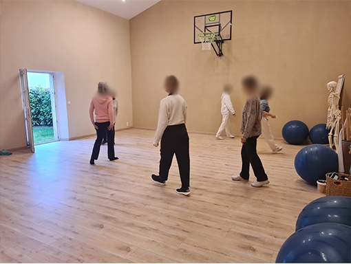 – Mise en disponibilité du corps et de l’esprit par des mises en mouvements dans l’espace associés à l’expression vocale (parlée ou chantée)